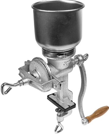 Його основною перевагою є регульована відстань між шліфувальними дисками, що дозволяє контролювати тонкість помелу та налаштовувати її відповідно до потреб кожного користувача. Його міцна чавунна конструкція забезпечує багаторічний термін служби, а проста конструкція дозволяє швидко розбирати, чистити та зберігати пристрій.