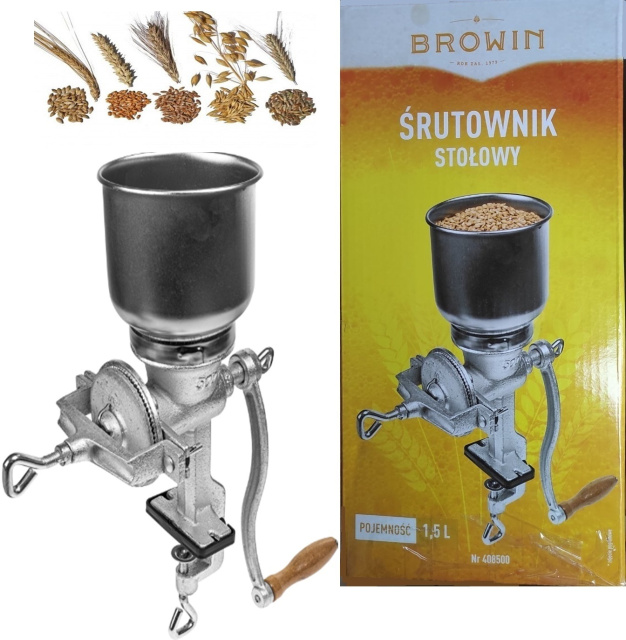 Цей традиційний, зручний настільний млинок – ідеальне доповнення до виробництва домашнього пива та винокурного затору. Він також ідеально підходить для помелу гороху чи кукурудзи.