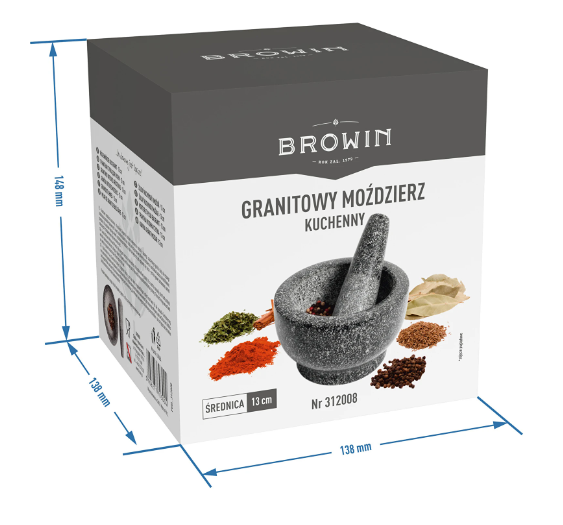 Міцний та натуральний матеріал – ступка з товкачиком діаметром 13 см виготовлена з міцного, високоякісного граніту, що робить виріб міцним, довговічним та елегантним.