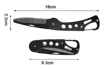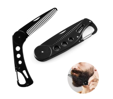 Складаний металевий гребінець для вусів і бороди, сталь, карабін.
