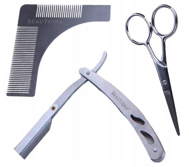 Набір для бороди: бритва, ножиці, шаблон, чохол.